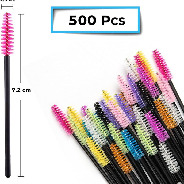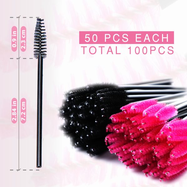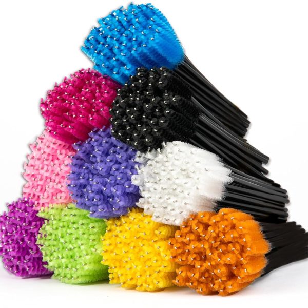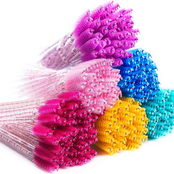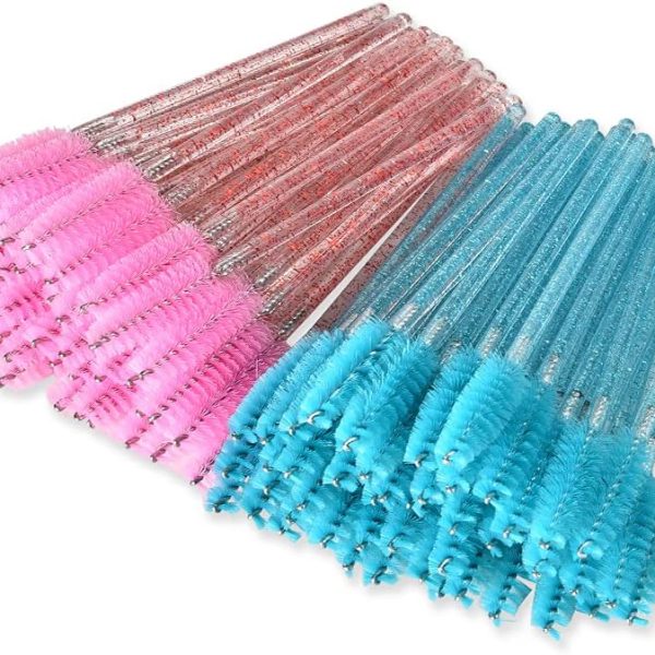 Farsa Life Mascara Wands 100 Pcs Disposable Eyebrow Spoolie Brush, Glittered Aquamarine & Pink Eyelash Applicator